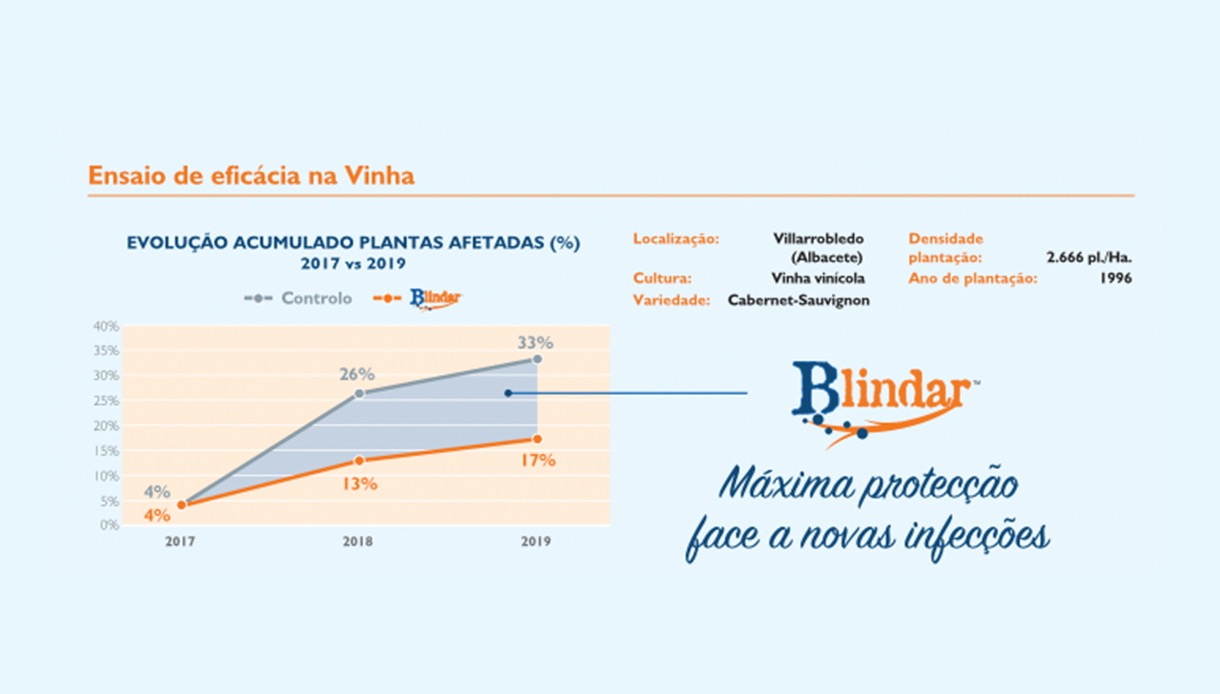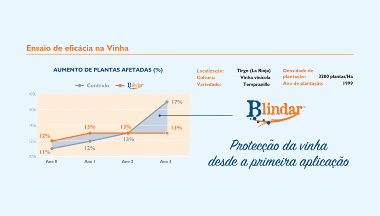 Ao longo dos últimos anos, a equipa da Lusosem tem trabalhado o Blindar junto dos viticultores, com o intuito de reduzir a mortalidade de plantas por doenças do lenho e, assim, aumentar a vida útil das vinhas, protegendo as feridas de poda.